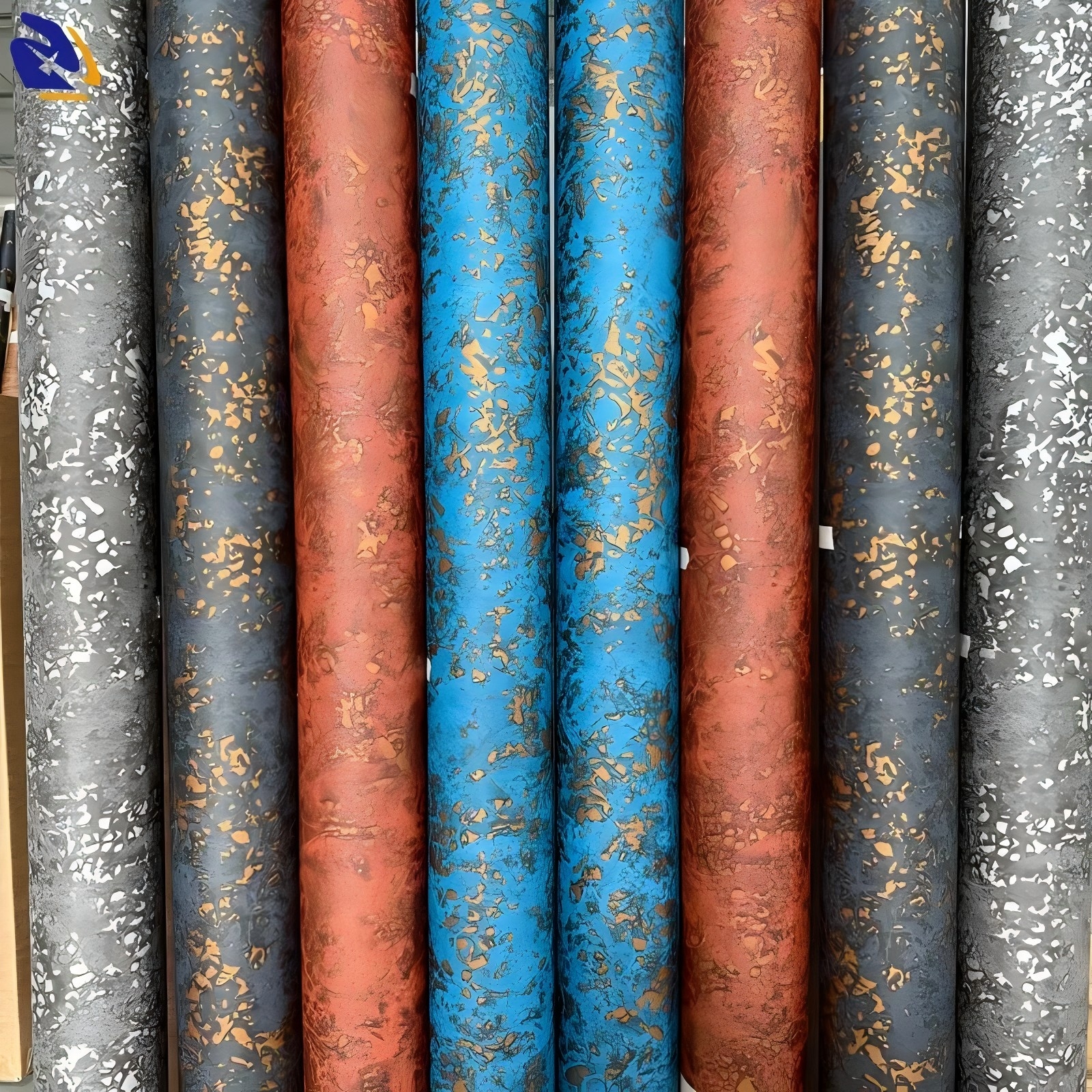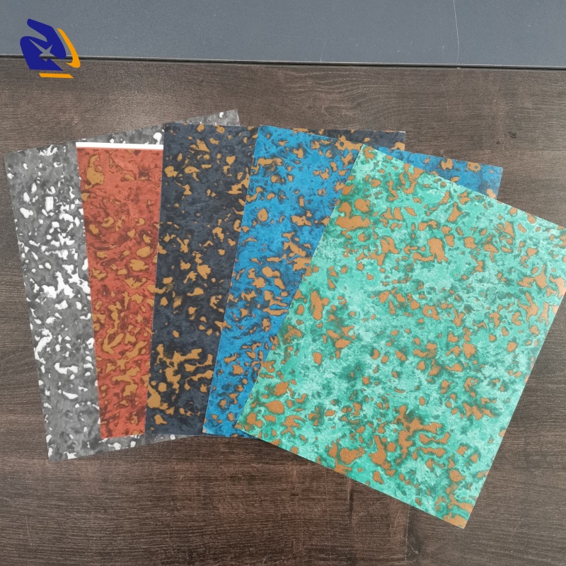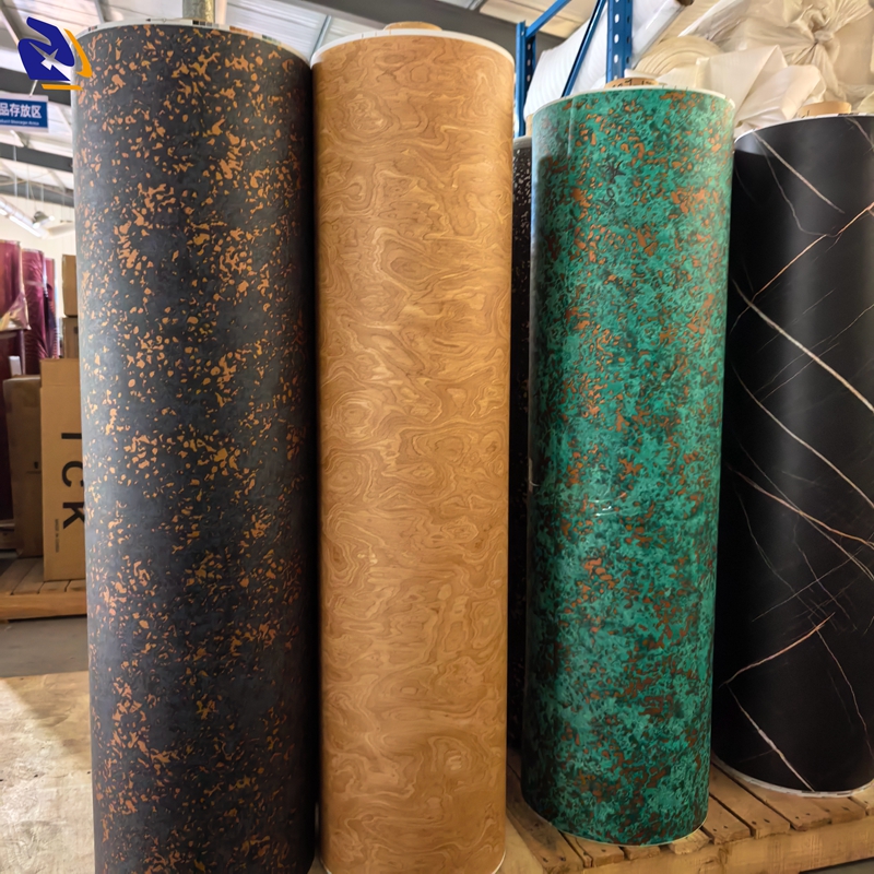 | Advantages | 1. Delicate golden fabric design PVC film, 3D Texture with Metallic effect.  |